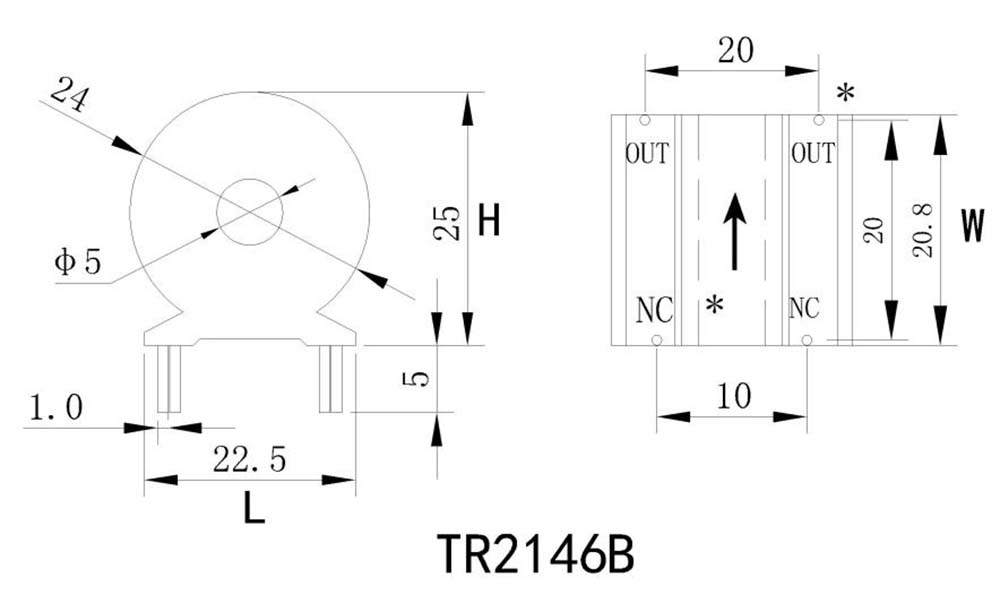 实物图 型 号 额定输入Iin 额定输出Iout 变比 最大过载倍数 二次负载(Ω) 精度等级 外形尺寸(mm)