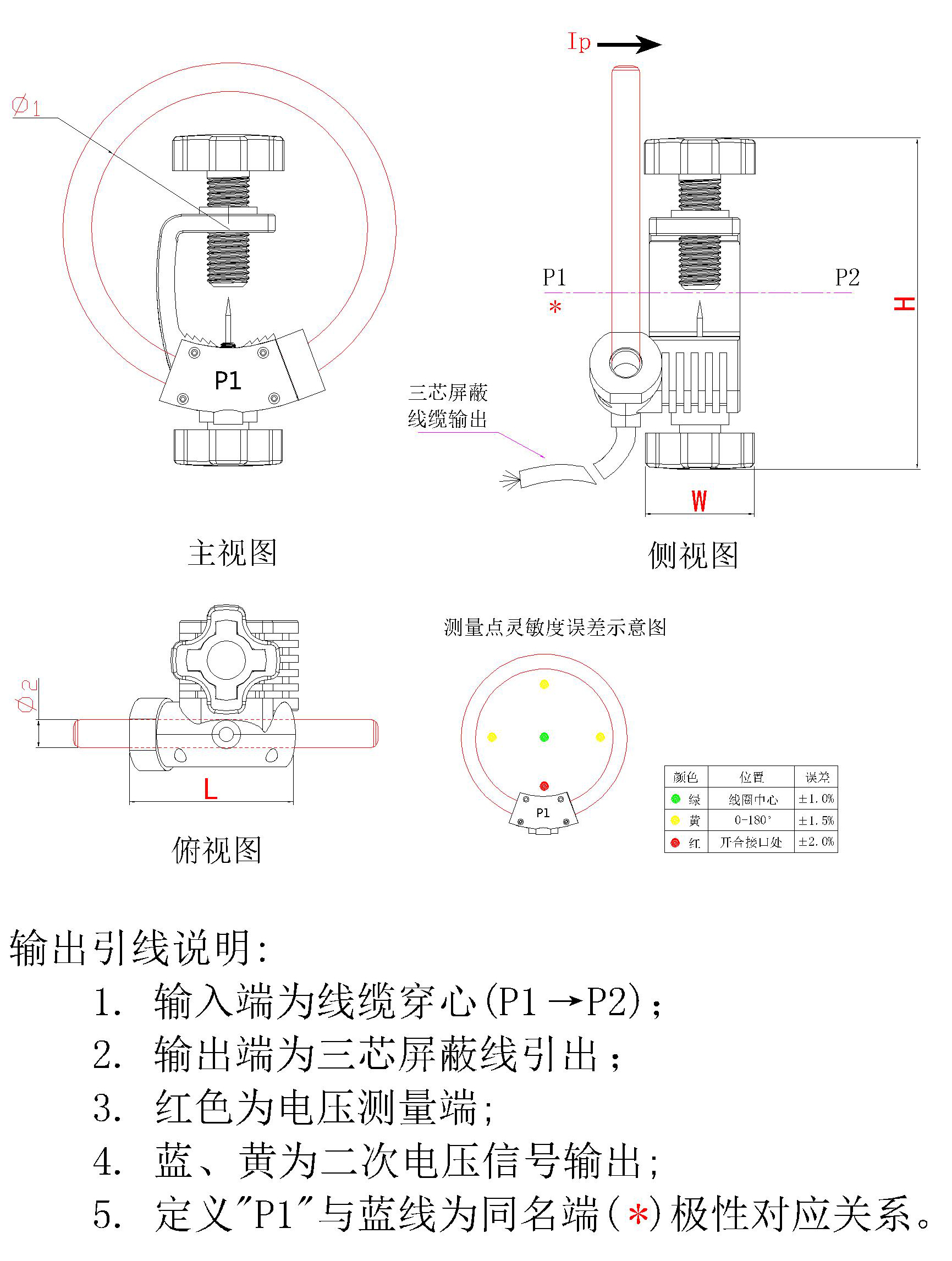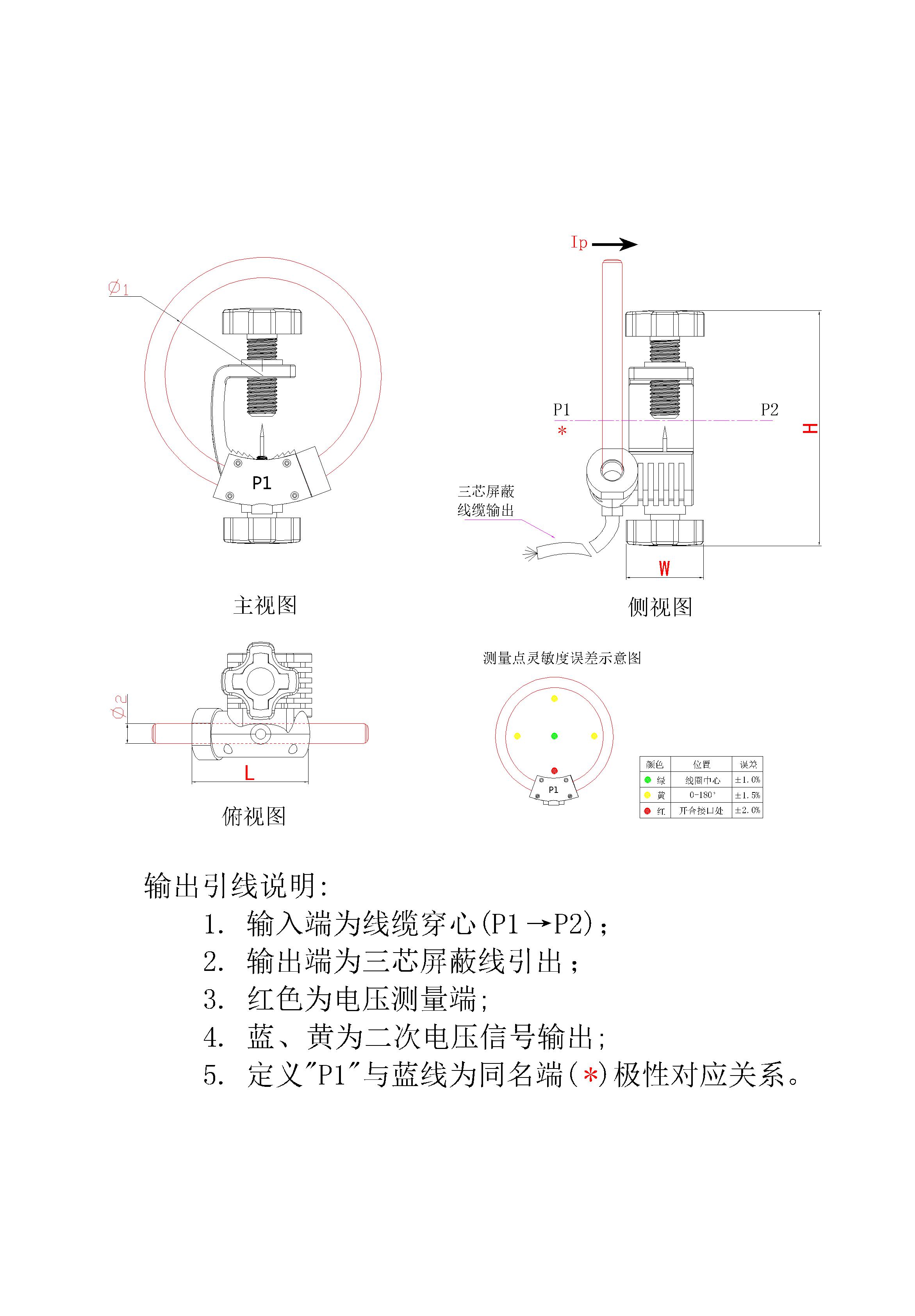 二次输出采用屏蔽线,长度可根据客户要求定制
